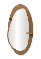The Acorde Mirror reflects the harmony between materials and design. Its structure, made of natural wood veneer or lacquered MDF, is complemented by a solid wood or lacquered MDF shelf and a hook available in stone, wood, or lacquered MDF.