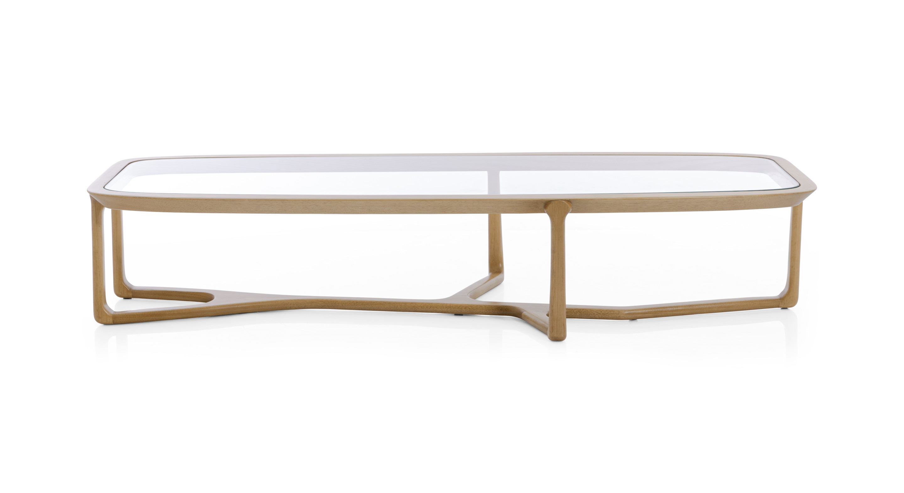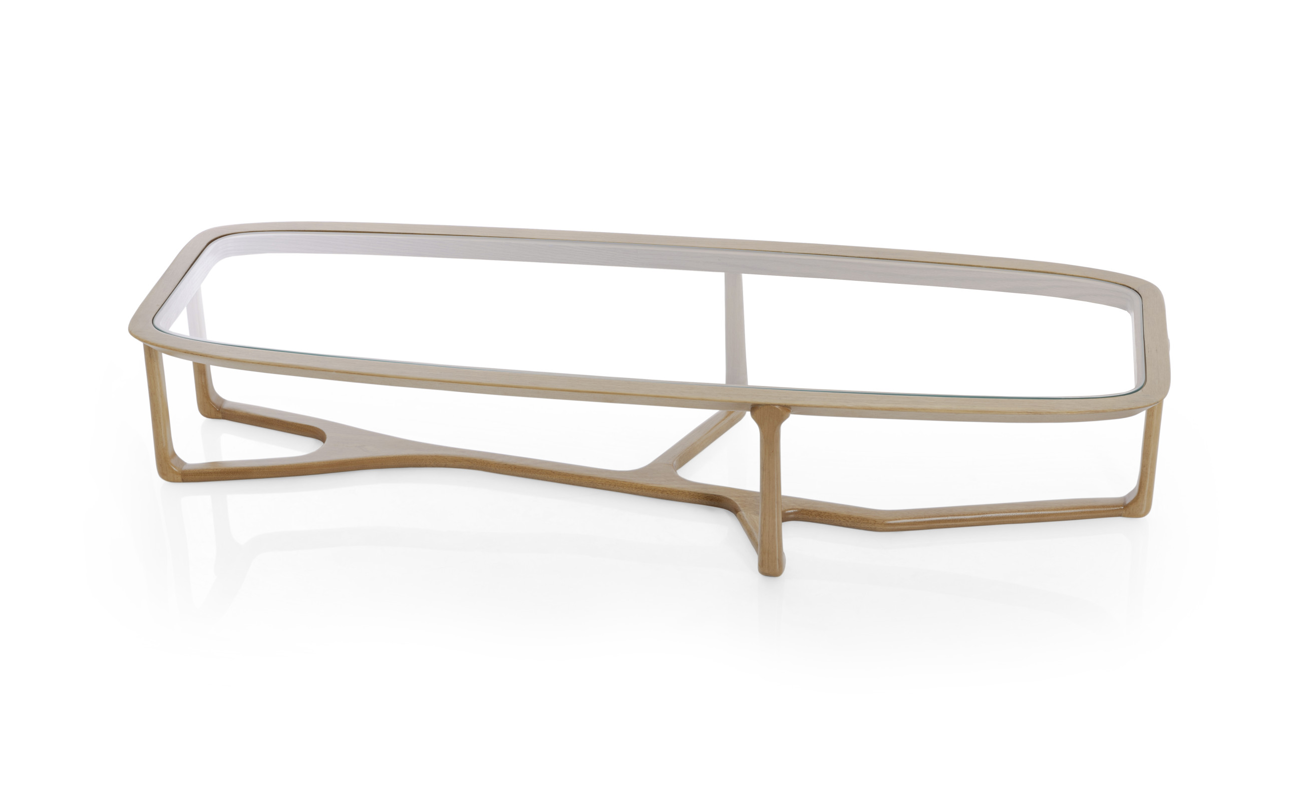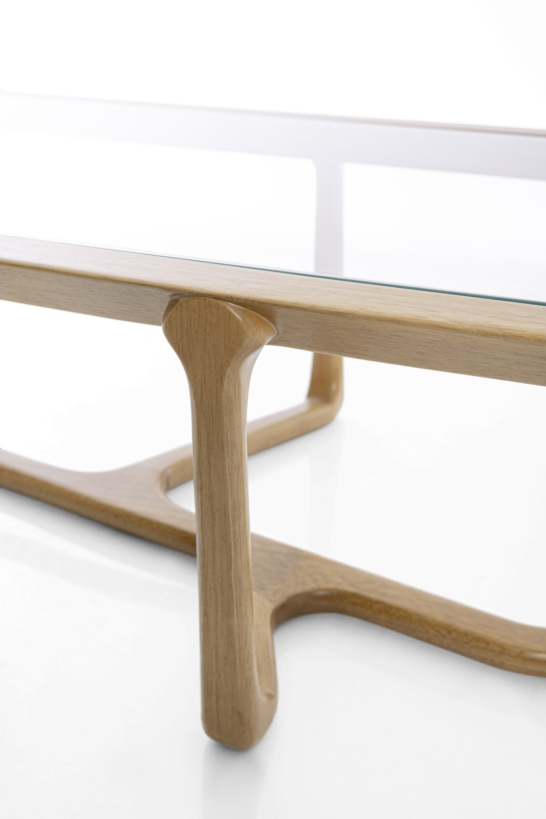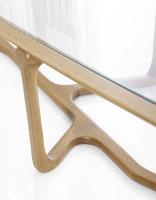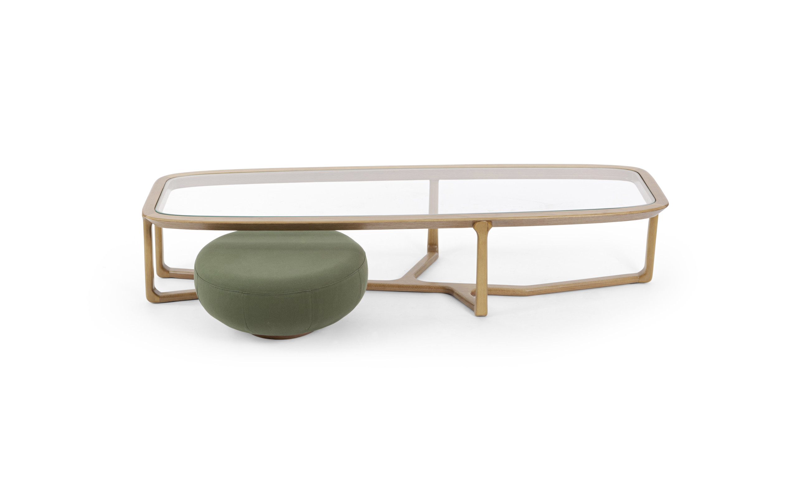 With a strong structure and unique design, the Aroeira coffee table and its ottoman harmonize the spaces they inhabit, bringing not only beauty but also versatility to the environment. Inspired by a pioneering species of Brazilian flora, the Aroeira table features legs unified in a shape that represents its roots, making the piece more resistant and visually striking. Its top is composed of a wooden frame with a 6 mm glass surface, offering greater visual openness to the structure when viewed from above.