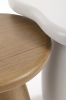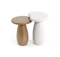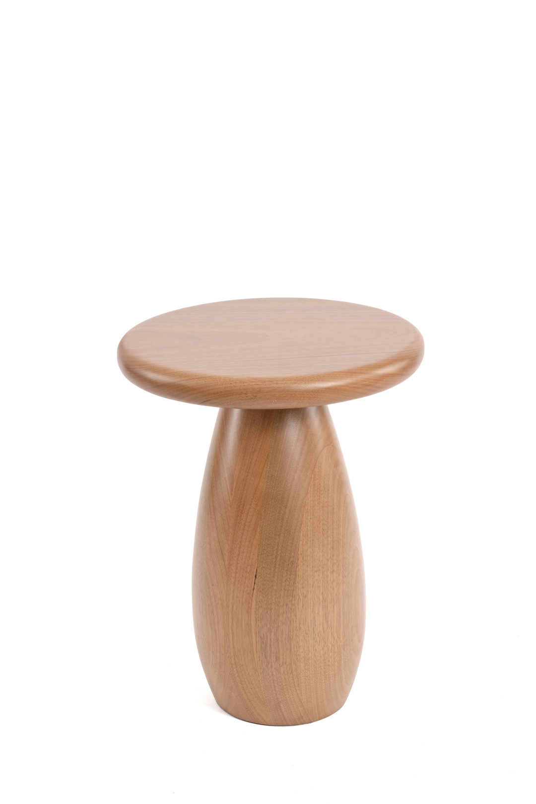 Inspired by the tree of the same name, the Baobá side table is crafted in solid wood or lacquered MDF. It is available with a round top or an organic-shaped top that references the form of the tree’s seeds.
