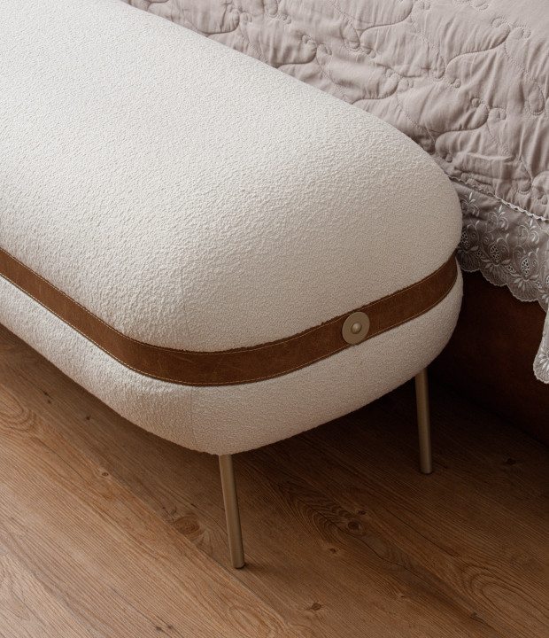 Just like blues music, the Blues bench and ottoman aim to bring a sense of warmth and harmony, making any space more inviting. Both pieces are upholstered with foam for comfort, while the leather-finish detail adds a luxurious texture. The lacquered metal legs provide a modern touch.