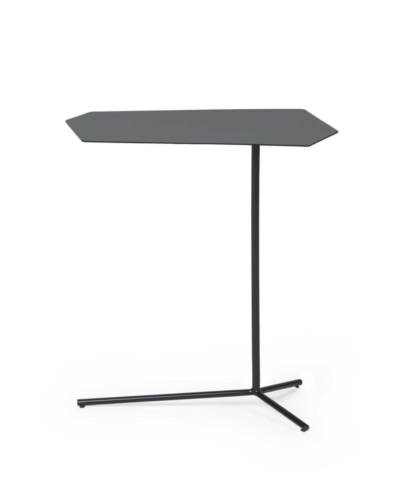 Made of carbon steel, the Grafeno side table conveys lightness and versatility. With a thin and intentionally asymmetrical top, it shapes the environment with visual impact and an element of surprise. Available in a lacquered finish.