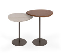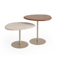 With a design that evokes the delicacy of a flower petal, the Pétala table set features a versatile top available in wood, lacquer, or stone. Its base is crafted in metal, offering an elegant and functional combination.