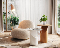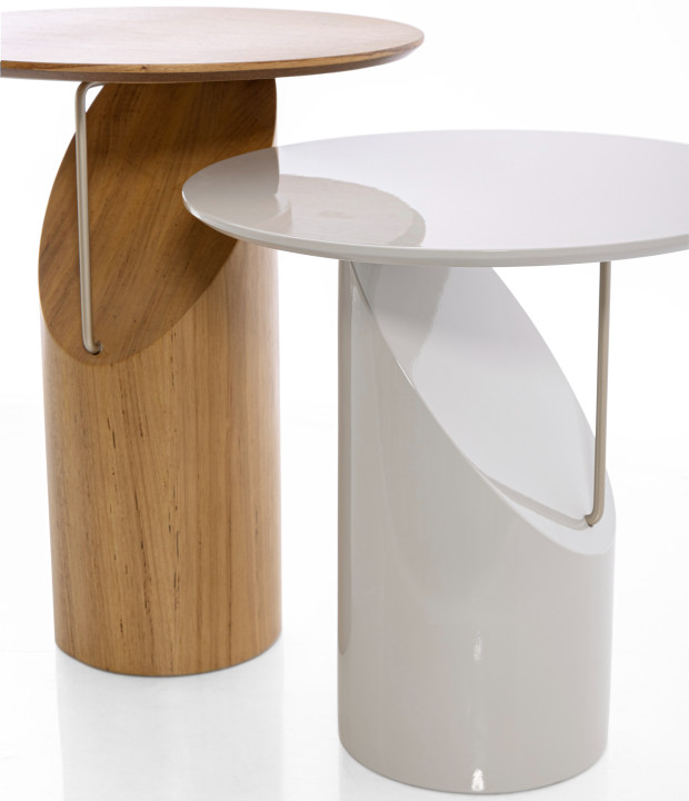 The Taichi table was inspired by the Chinese martial art of the same name, Tai Chi Chuan. Known for its slow, harmonious, and circular movements, it is considered a form of meditation in motion. The table’s shape reflects this delicacy: a robust base in solid wood or lacquered MDF, combined with a carbon steel detail that visually lifts the top, creating a levitating effect. Versatile and minimalist in appeal, it features a top in lacquered MDF or natural wood veneer.