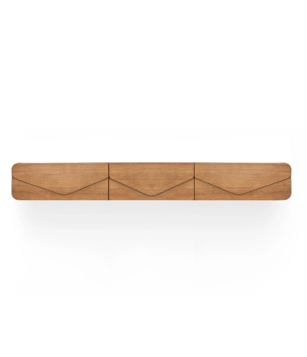 O aparador suspenso Atol é uma peça versátil, que pode ter diversas dimensões para se encaixar em qualquer ambiente da casa, seja no quarto, sala ou até mesmo no escritório. O desenho da frente das gavetas representa a linha que conecta os escudos central e lateral do casco da tartaruga-verde, que vive no Atol, criando um movimento que se repete. O caixote e frente de gavetas são confeccionados em lâmina natural de madeira ou laca.