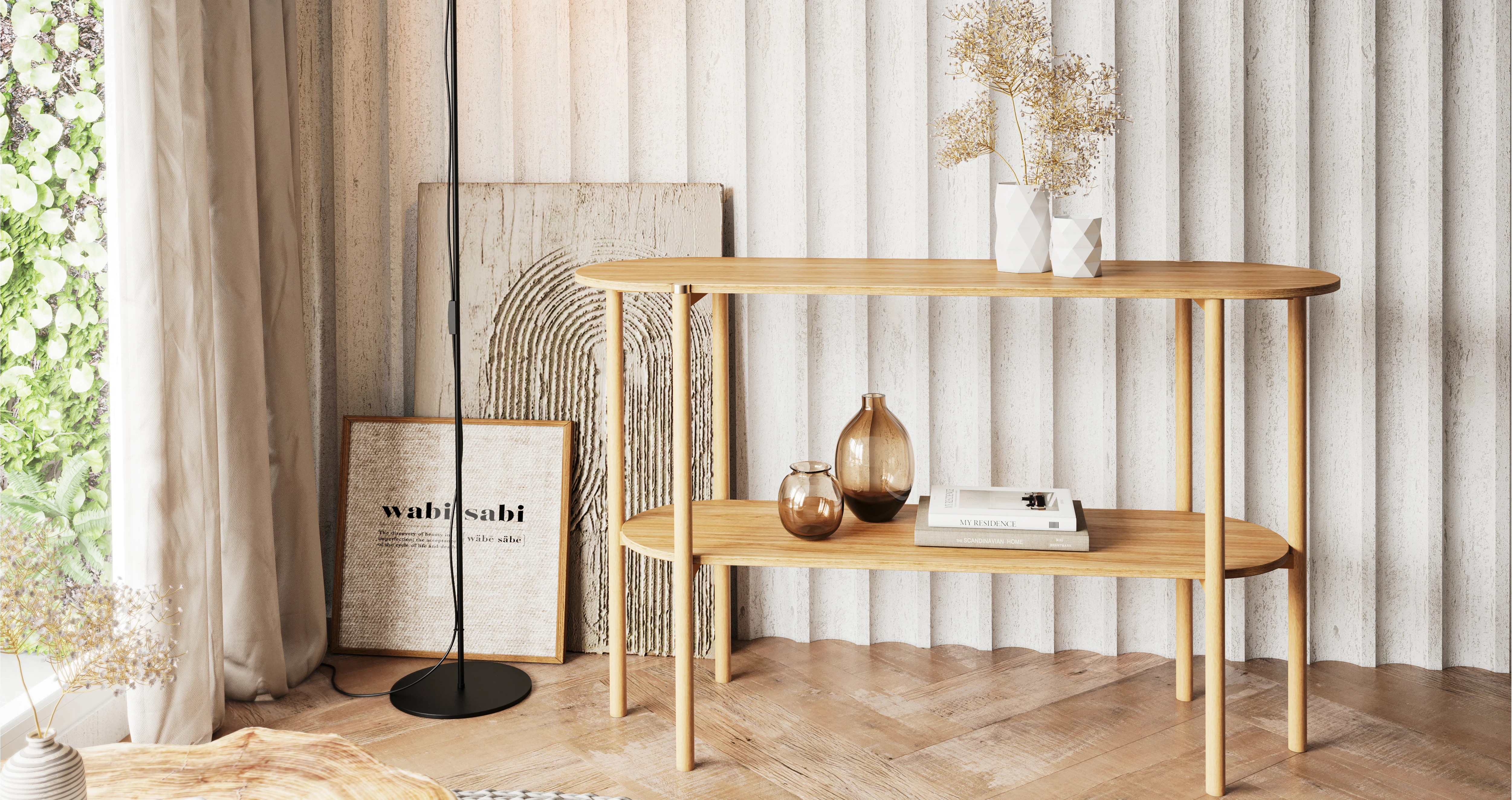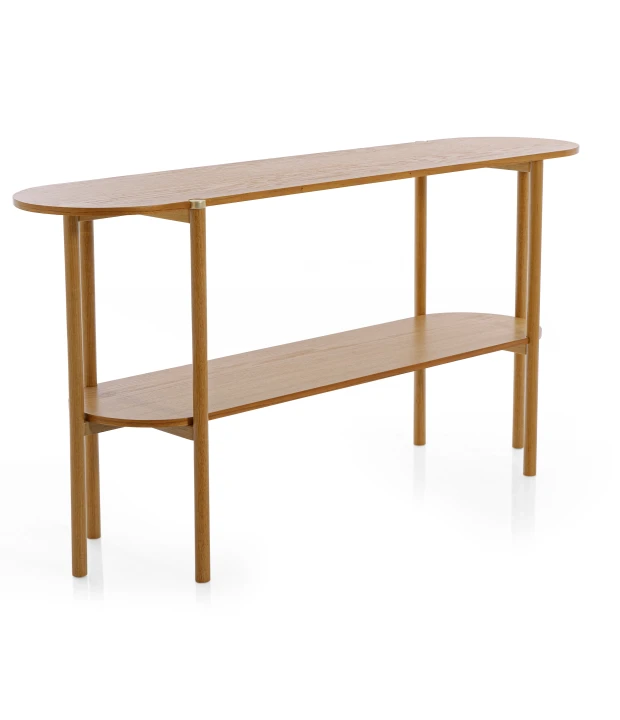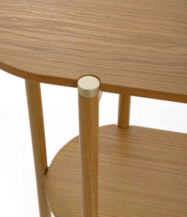 O aparador Maya possui tampos de MDF revestido com lâmina natural de madeira ou com acabamento em laca. Os pés são em madeira maciça e as ponteiras são laqueadas em tons metálicos.