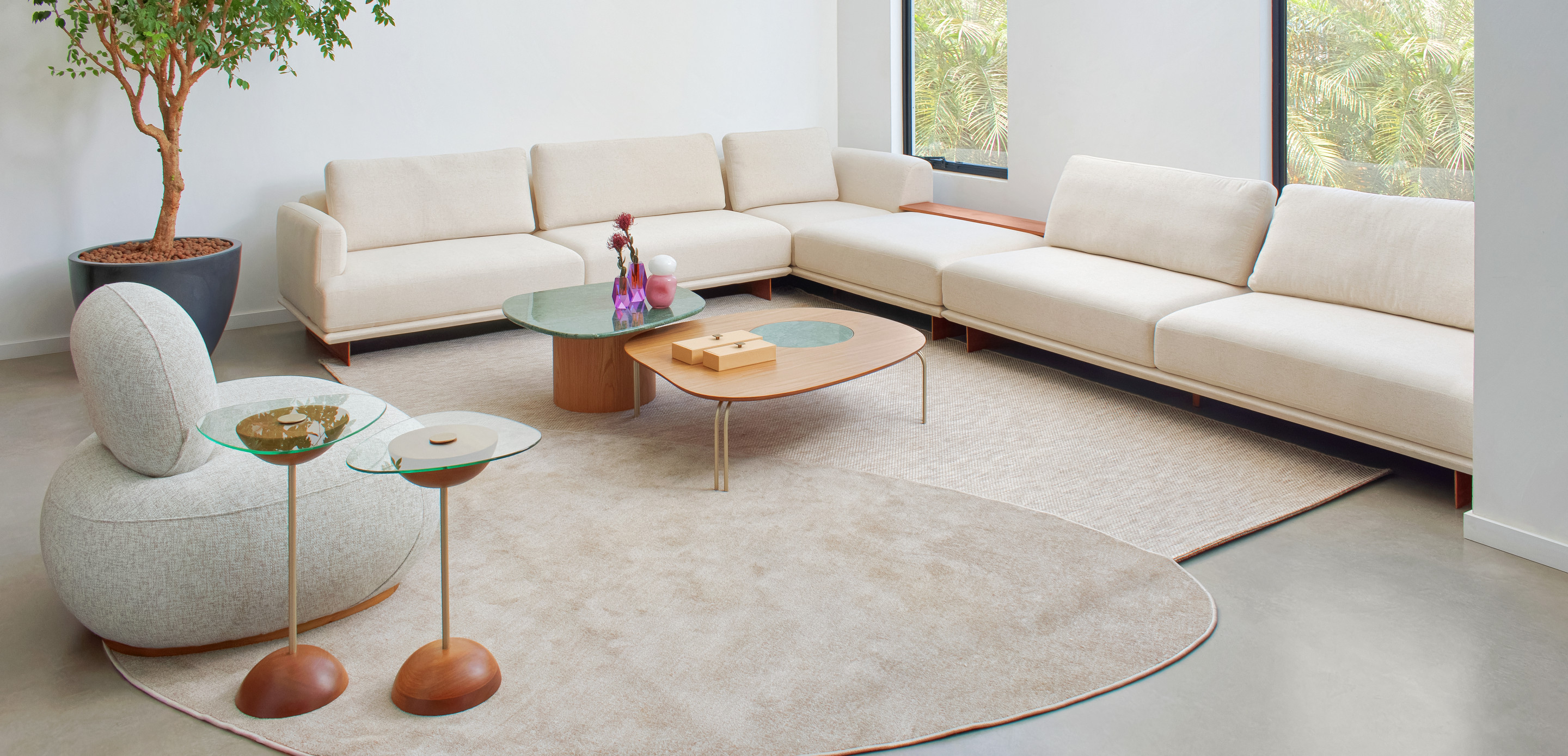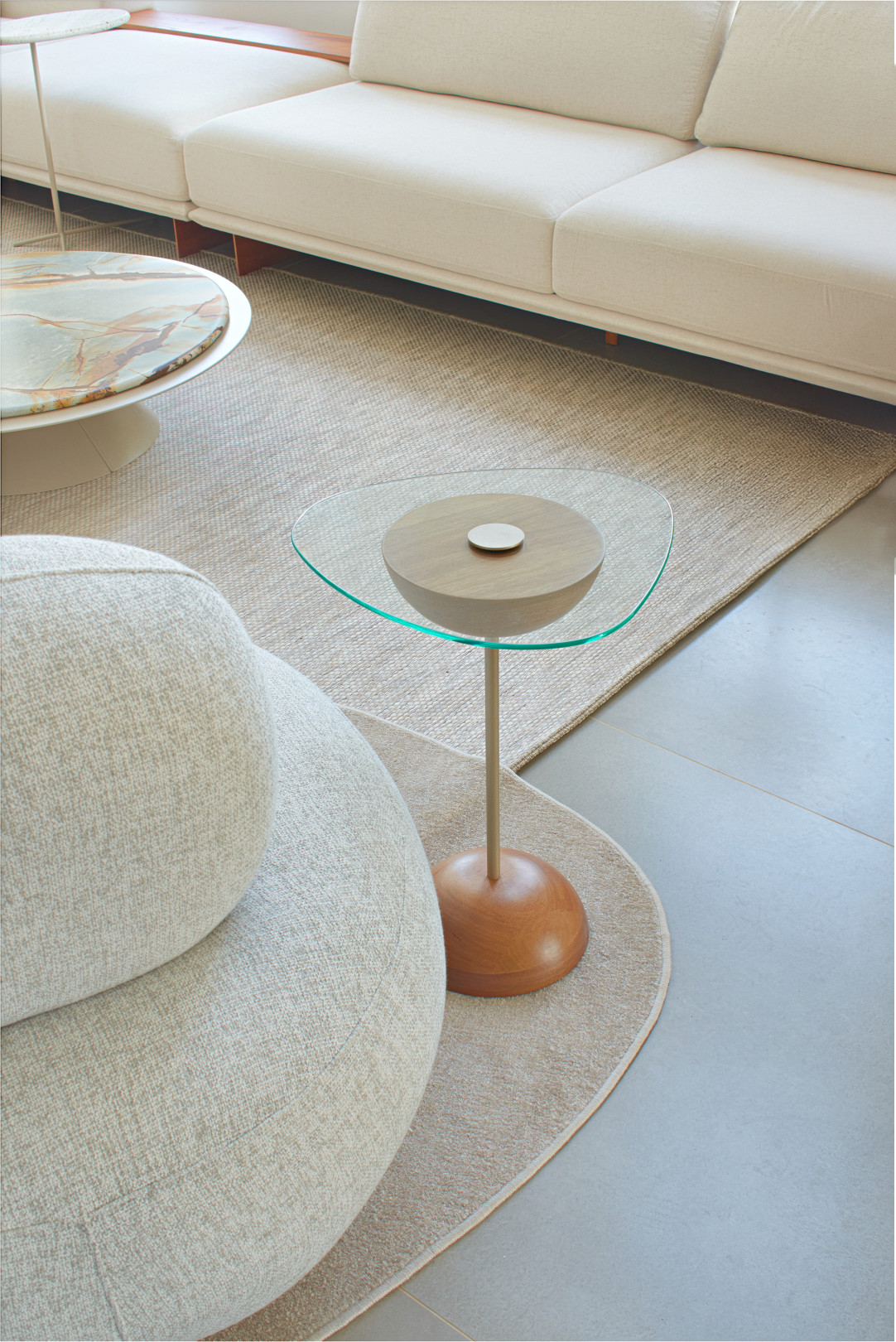 A mesa lateral Bolero apresenta um tampo de vidro orgânico translúcido ou fumê, acompanhado de um detalhe e haste em aço Carbono. Inspirada na elegância envolvente da dança Bolero, sua base apresenta um design côncavo, fabricado em madeira maciça ou MDF com acabamento laqueado, garantindo sofisticação ao ambiente.