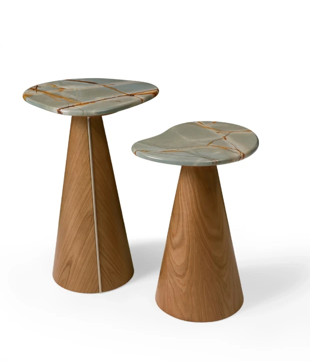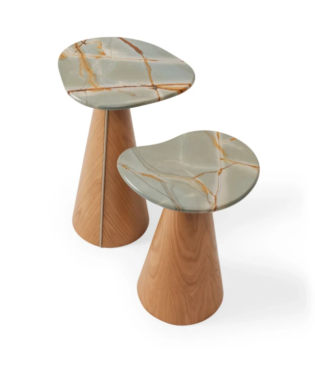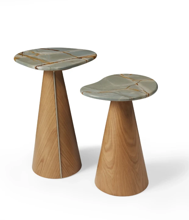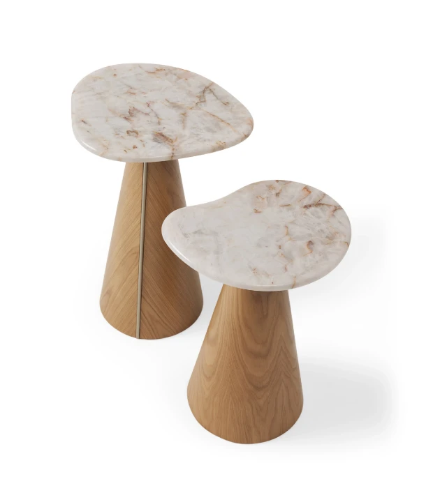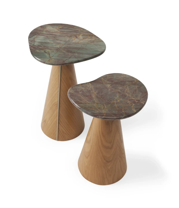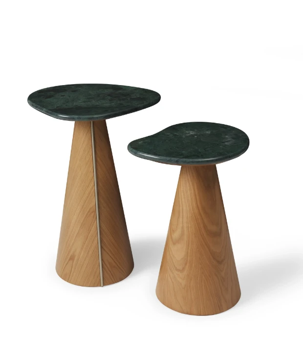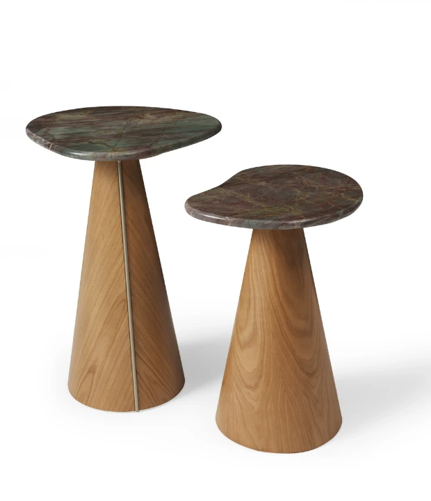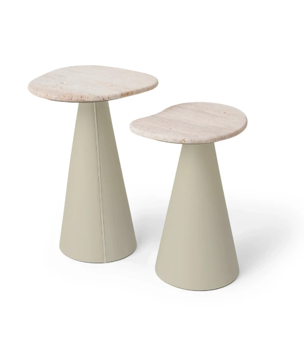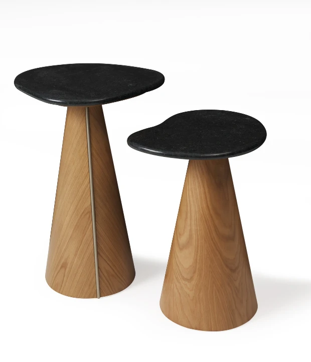 A mesa lateral Colina é feita em MDF com acabamento em laca ou revestido com lâmina natural de madeira e detalhe de aço carbono em sua base. Está disponível em três tamanhos com diferentes formatos de tampo. O tampo pode ser feito em pedra, MDF laqueado ou revestido com lâmina natural de madeira.