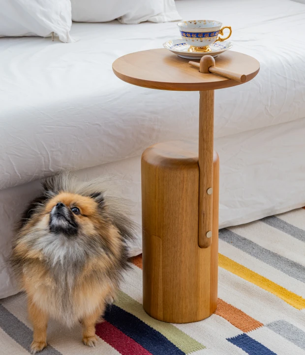 A mesa lateral Flepa valoriza a marcenaria com um design que equilibra simplicidade e sofisticação. Produzida em madeira maciça ou MDF, com opções de acabamento laqueado ou texturizado no tampo e na base. Destaca-se pela pequena trava de madeira, inspirada na "lasca" que se aloja nos dedos de quem trabalha com a madeira bruta, transformando um elemento rústico em detalhe estético e funcional.